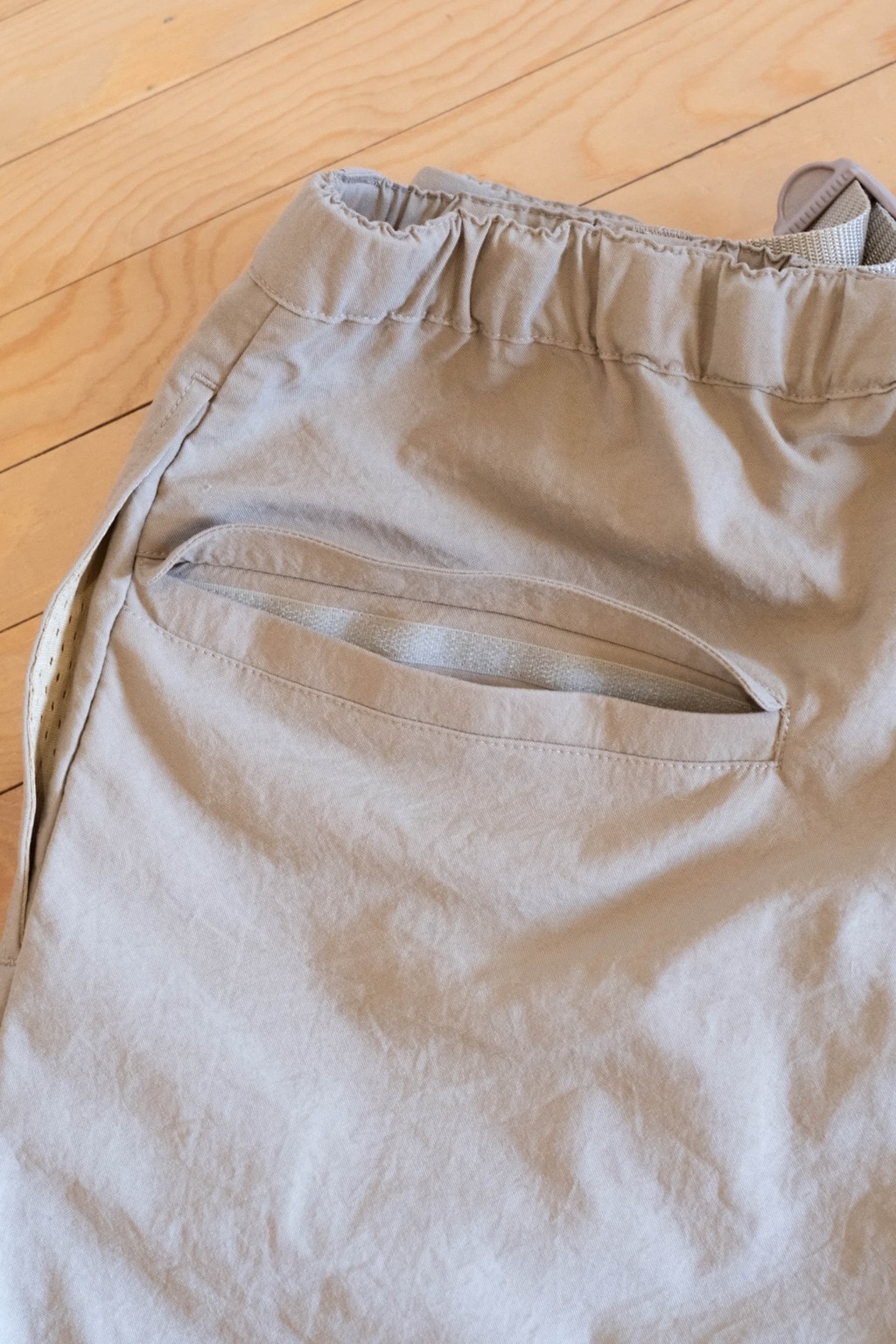 摩擦に強く、軽量で乾きやすい。そんなナイロンコットンに、弱点があるとすれば、「通気性」。そこで計4つのポケットのインナーにメッシュを採用。パンツ内を調湿し、快適に過ごせるよう工夫を施した。